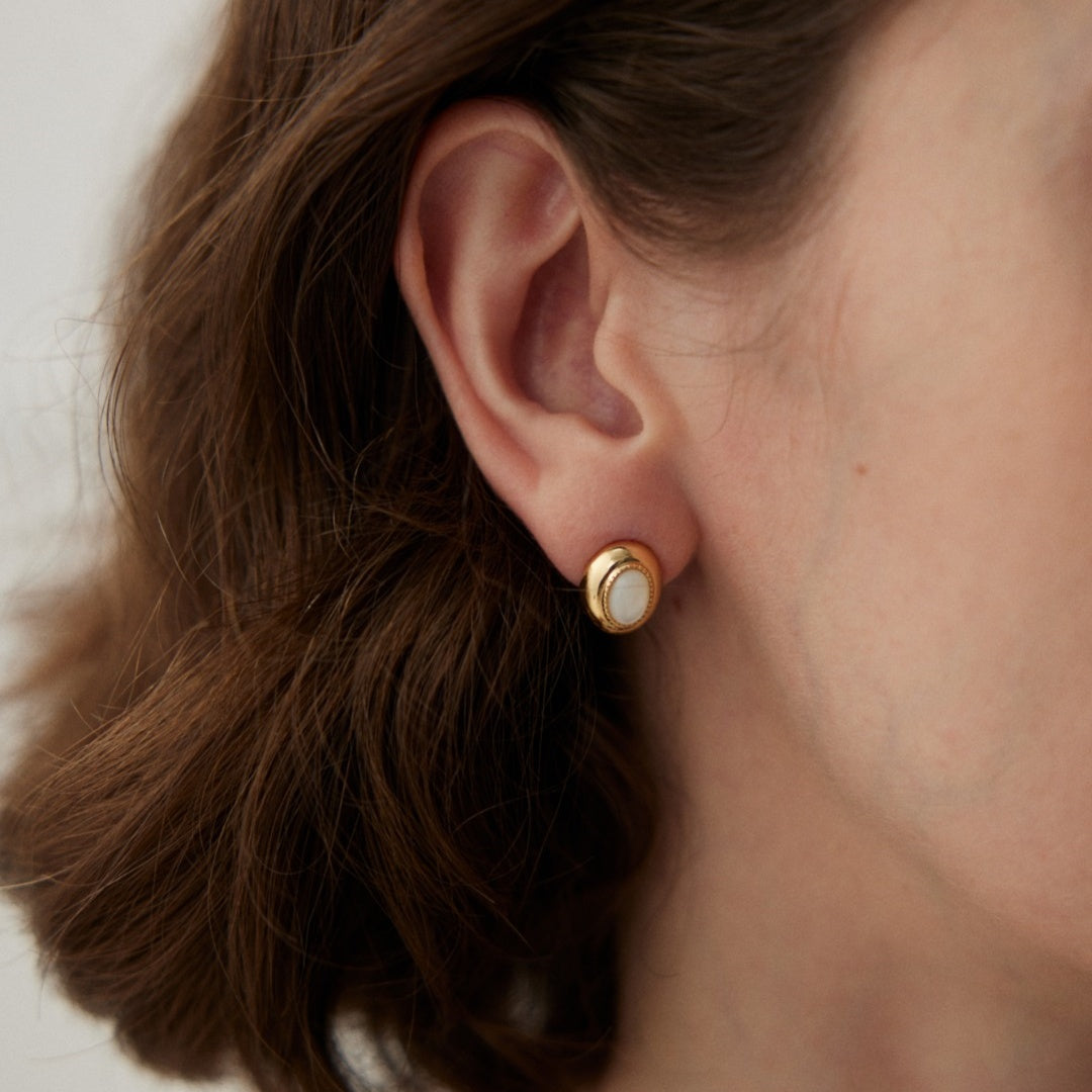 オーバル型のスタッドピアスは、シンプルさの中に個性的な魅力を秘めています。ゴールドの輝きが耳元でさりげなく存在感を放ち、あなたの個性を引き立てるアクセサリーとしても最適です。