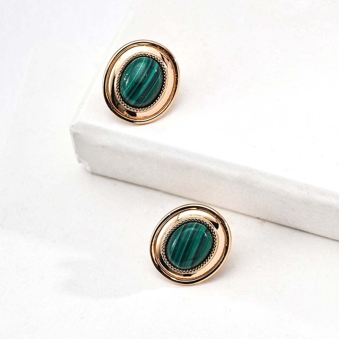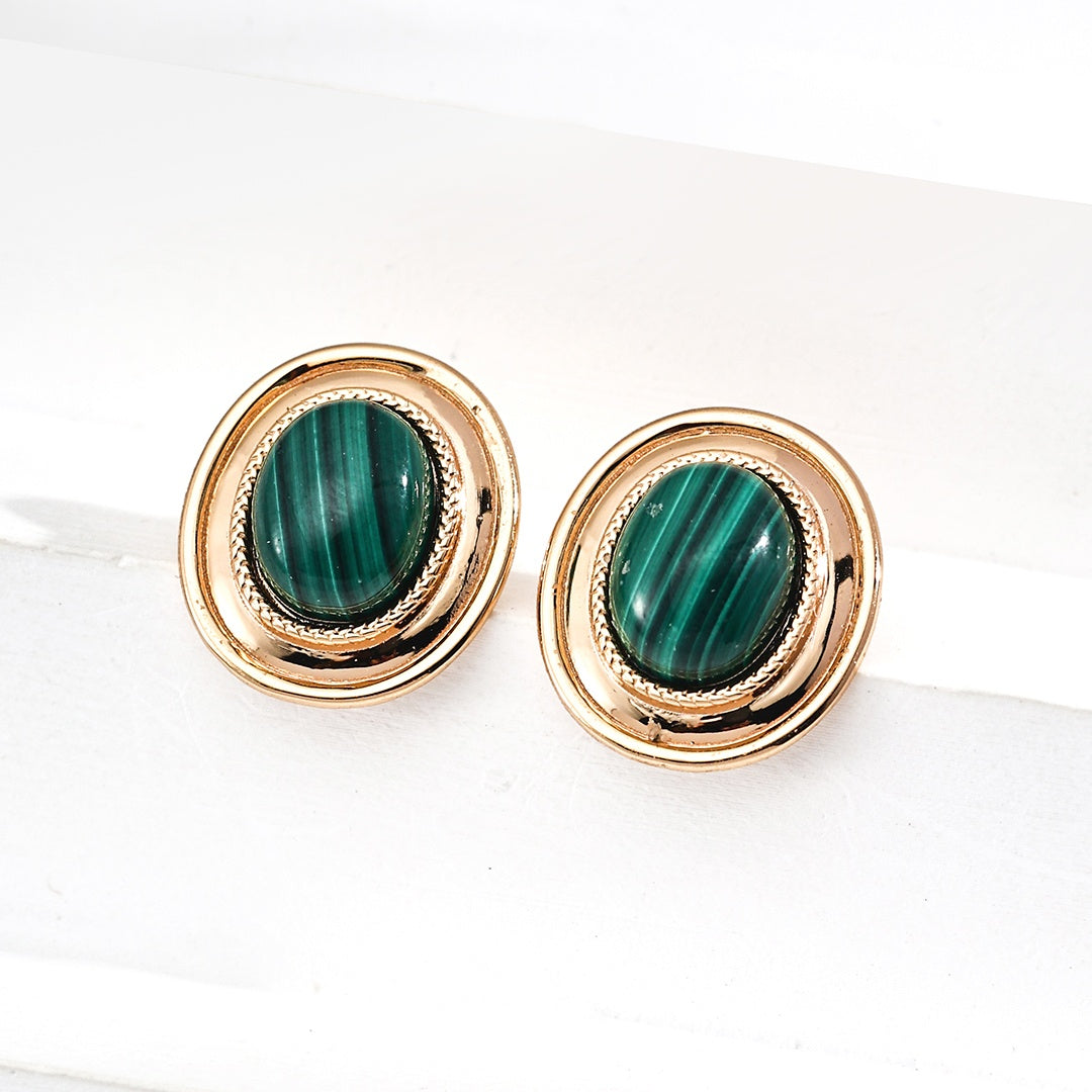 マラカイト オーバル型 スタッドピアス