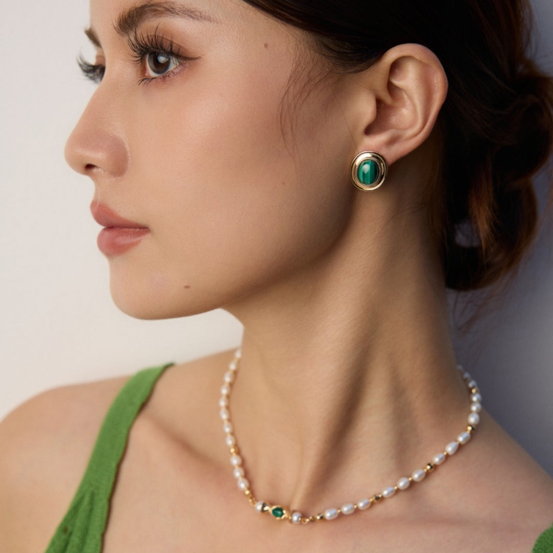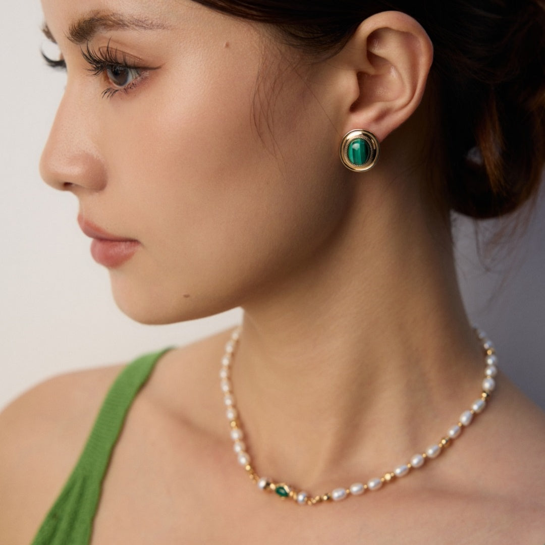 【魅惑のマラカイト オーバル型スタッドピアス】